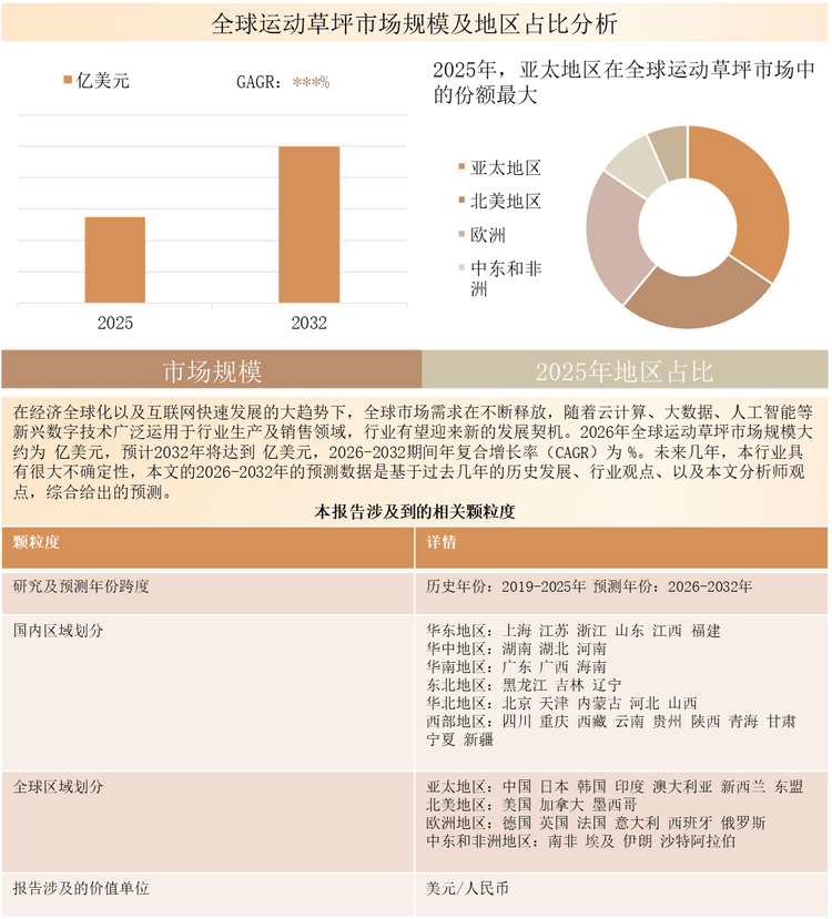 赣超联赛,江西城市足球,赣超赛程,赣超比分,赣超球队,赣超直播共研产业研究院通过对公开信息分析、业内资深人士和相关企业高管的深度访谈,以及分析师专业性判断和评价撰写了《2026-2032年全球与中国运动草坪市场全景调查与投资可行性报告》。本报告为运动草坪企业决策人及投资者提供了重要参考依据。